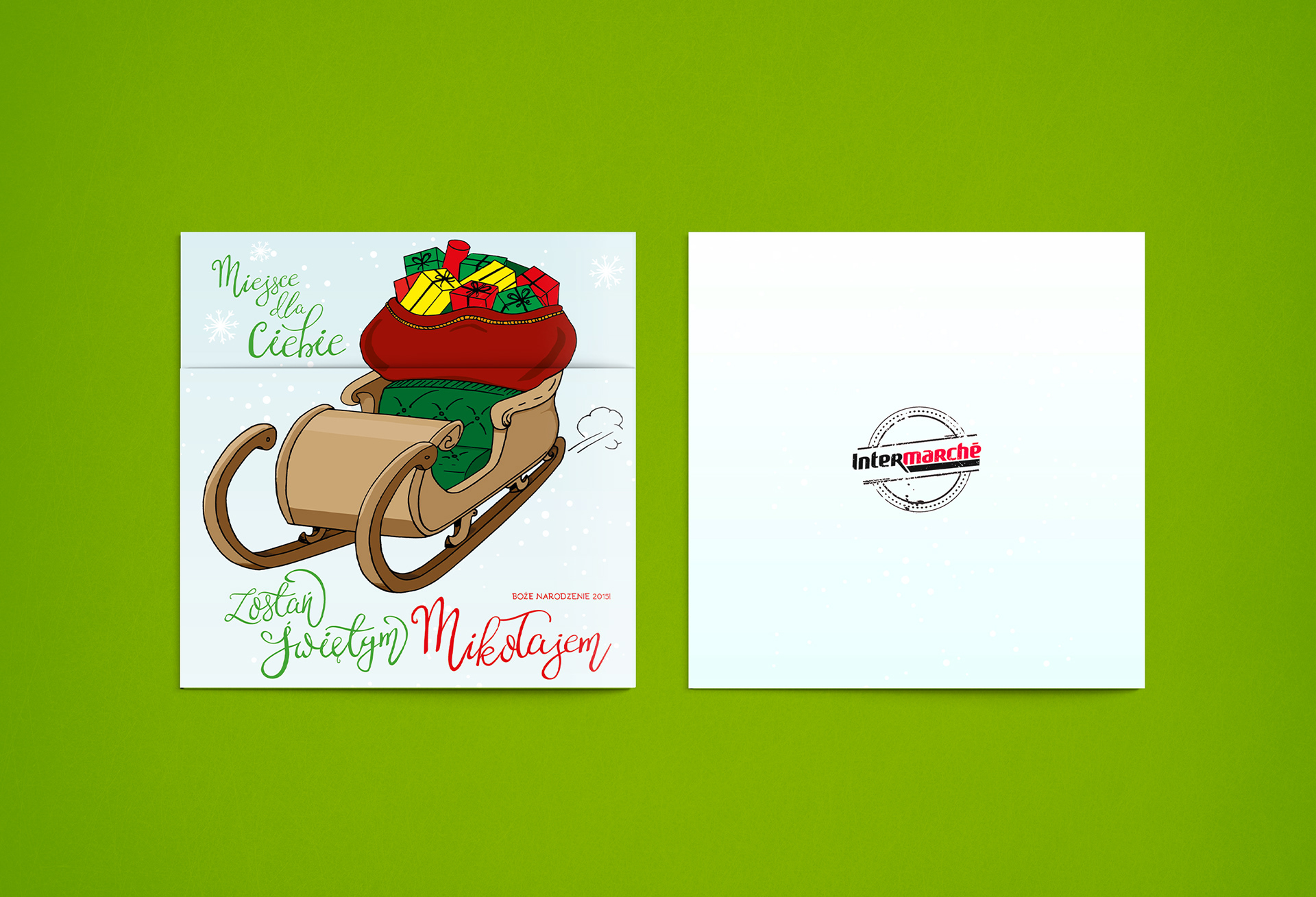 Byliśmy odpowiedzialni za przygotowanie niezwyczajnej kartki świątecznej. Stworzyliśmy ilustracje, napisy, opracowaliśmy ją graficznie i zaproponowaliśmy nietypowe złożenie, kryjące niespodziankę.