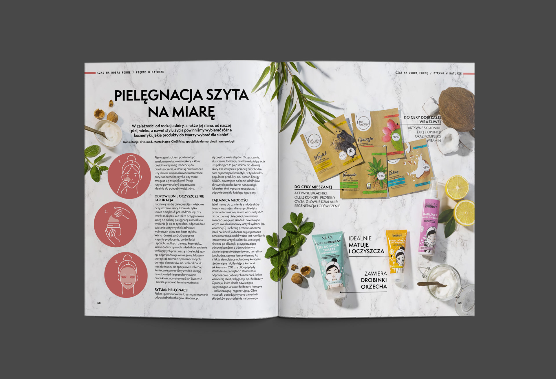 We współpracy z agencją SKIVAK, przeprowadziliśmy kosmetyczną sesję fotograficzną do magazynu life stylowego sieci handlowej Biedronka – CZAS NA DOBRĄ FORMĘ