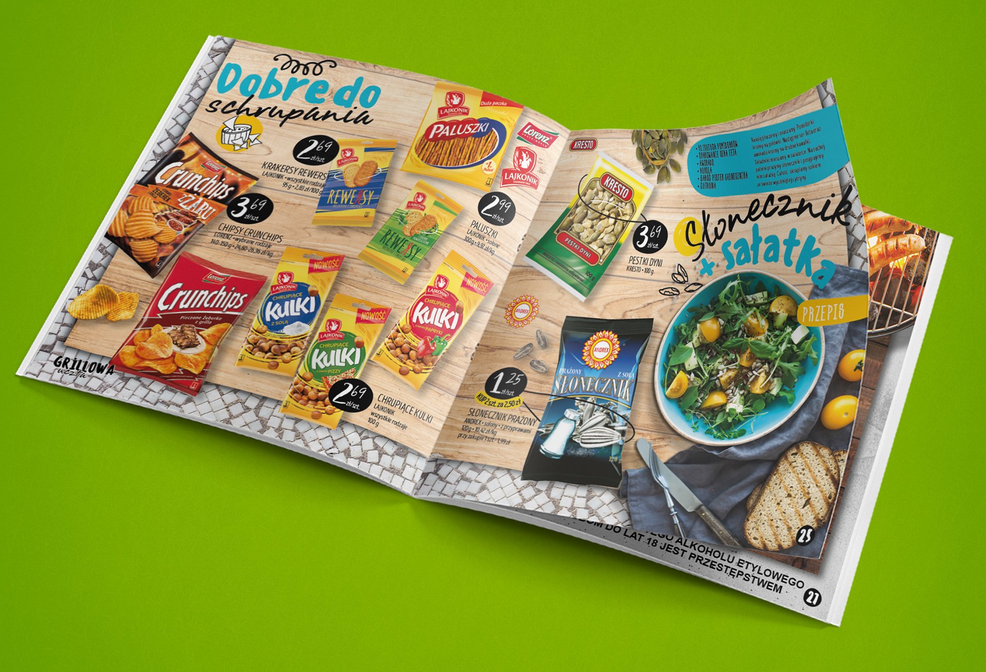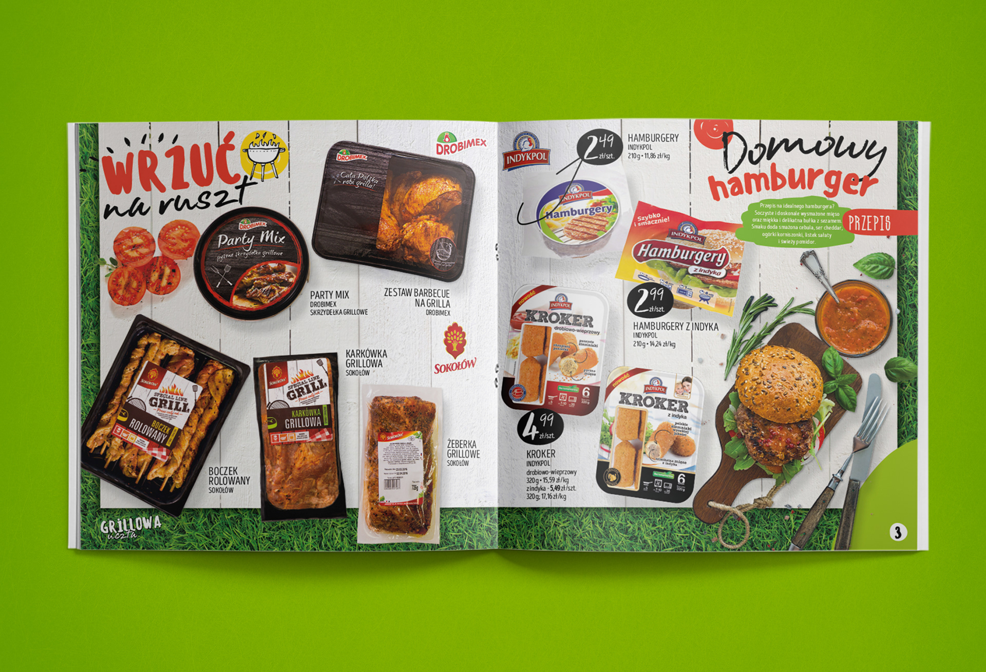 Na zlecenie SKIVAK, zaprojektowaliśmy serię gazetek produktowych dla sieci handlowej STOKROTKA. Zrobiliśmy zdjęcia wędlin.